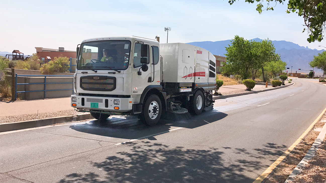 The Elgin Broom Bear is now powered by compressed natural gas, making it an eco-friendly option for commercial chassis, and single-engine mechanical sweepers. The state-of-the-art Cummins Westport L9N N-Gas natural gas engine ensures that the Broom Bear meets fully certified EPA/CARB emission standards for single-engine street sweepers. With the optional PM-10 package, the Broom Bear can also be SCAQMD rule 1186 compliant. It boasts a sweeping range even beyond the standard diesel Broom Bear, thanks to its three 3600 psi composite fuel tanks with a generous 51-gallon diesel equivalent fuel capacity. The Broom Bear remains tough on dust and debris while being easy on operators and the environment.
