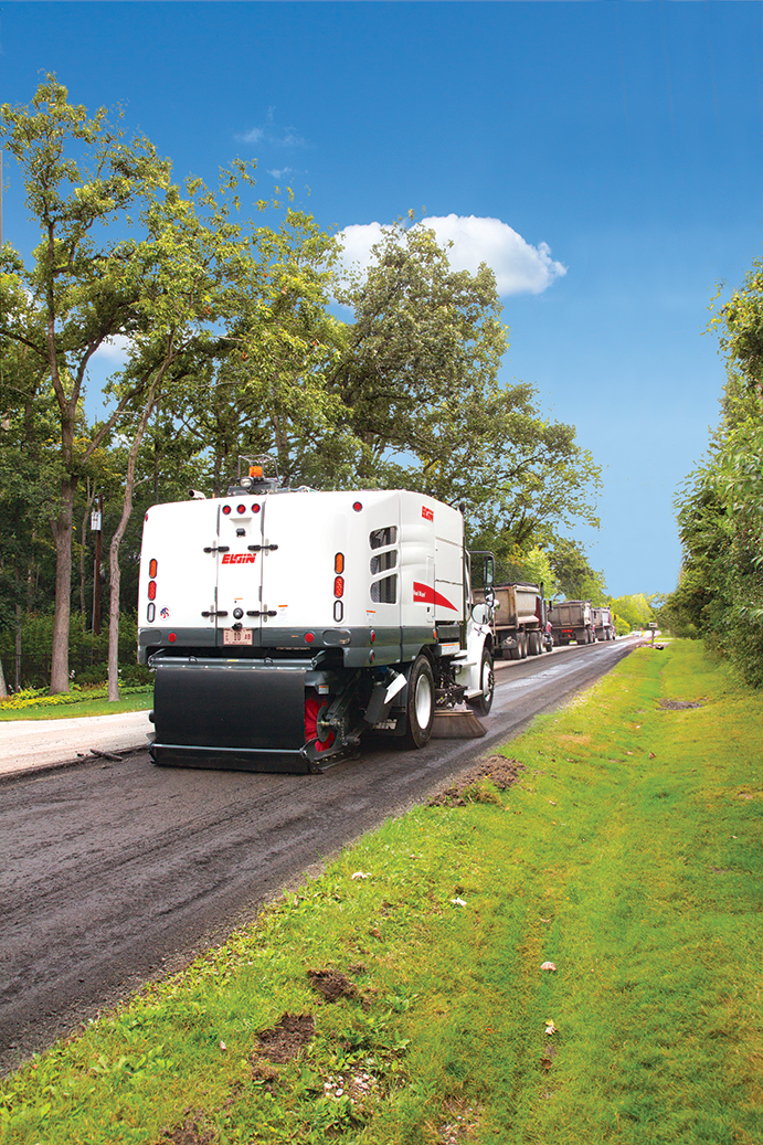 The Elgin Road Wizard is now available with your choice of squeegee or no-jam belt conveyor systems depending on the application requirements. The Road Wizard offers the flexibility of mounting on a selection of commercial cab-over or conventional chassis. Due to its quad-pump hydraulics design, all sweeper functions operate in parallel, allowing the Road Wizard to power through any heavy construction and gravel loading application.