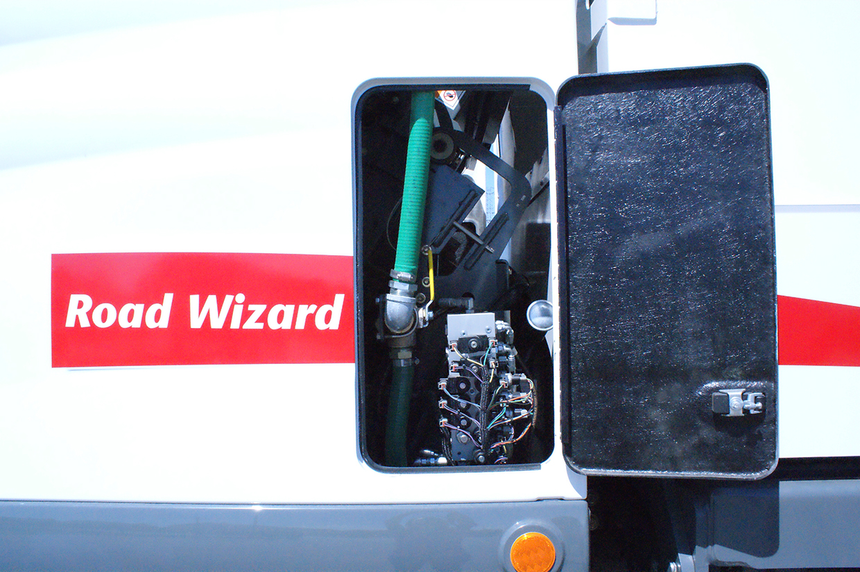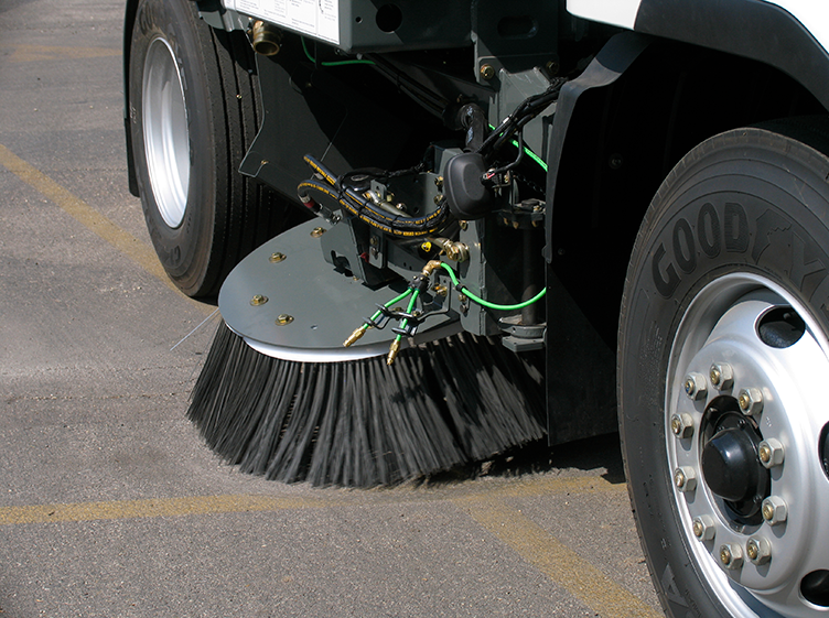 The Elgin® Road Wizard® mechanical broom sweeper has a powerful, dual-engine design with a 360-gallon (1363l) water tank for superior dust control and a large 5.4 yd3 (4.1 m3) hopper. This sweeper features a double-scissors lifting mechanism, which is center-mounted for greater stability, rigidity, and trouble-free operation. Plus, its dumping height is variable up to 11 feet, 2 inches (3404 mm), and 11” (279 mm) of hopper side-shift ensuring uniform dumping.